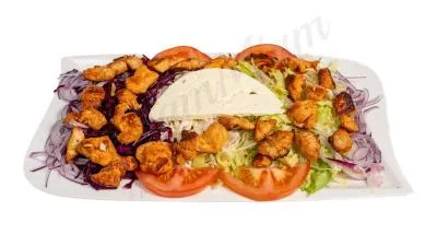 émincé de poulet, salade verte, tomates, oignons | ||